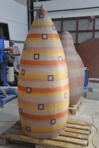 De vier objecten (H. 140 tot 185 cm en